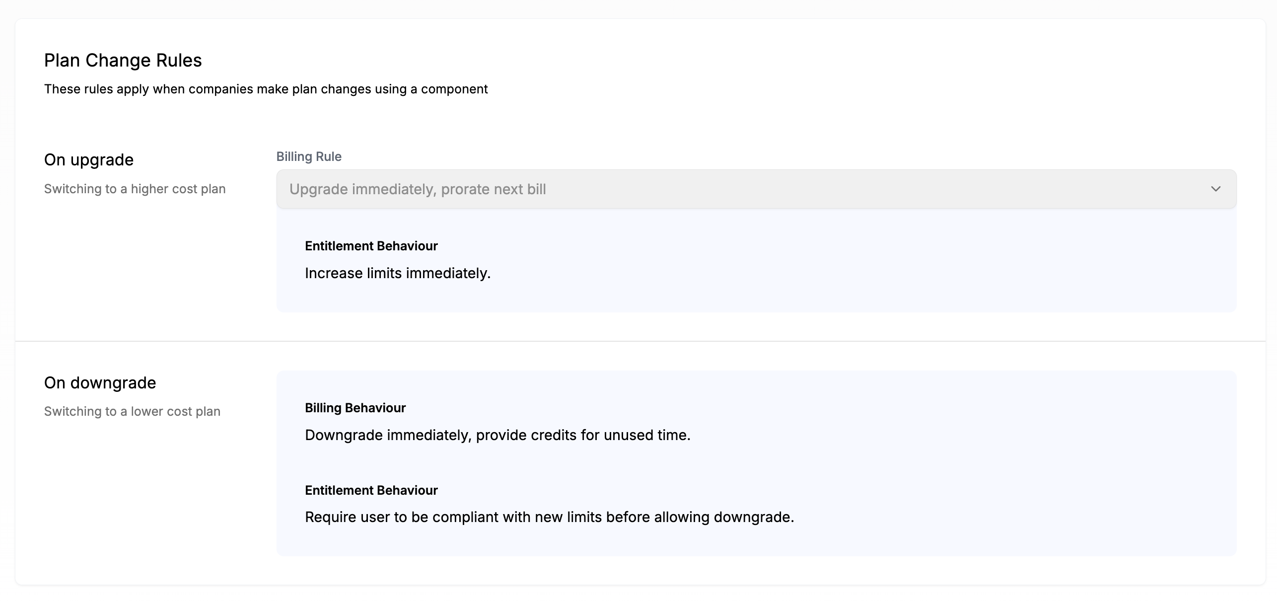 Currently, Plan Change Rules cannot be modified; however, we will be introducing more optionality here in the future.