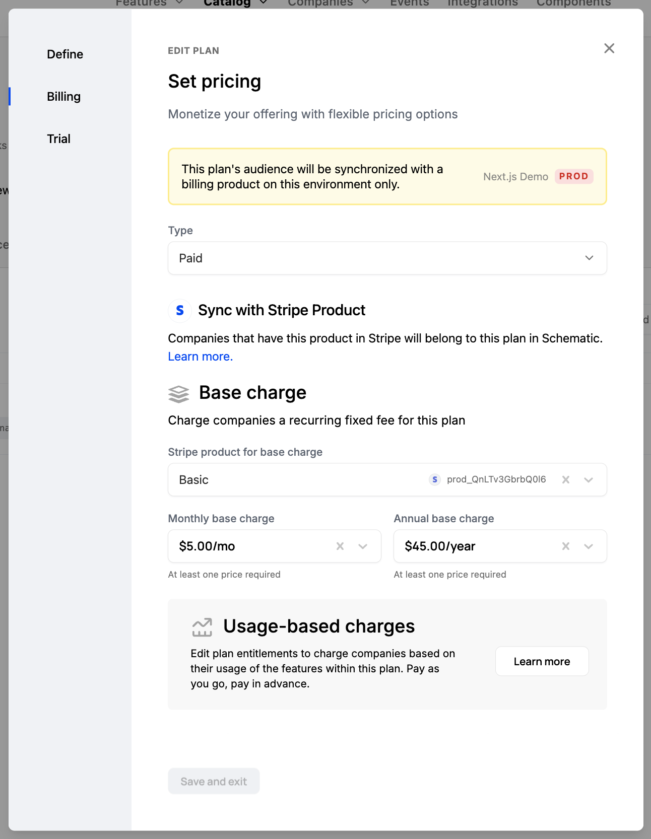 Defining billing is optional — you can define a plan in Schematic that is not linked to Stripe billing at all. In that case, you can indepedently manage plan membership and how companies are charged.