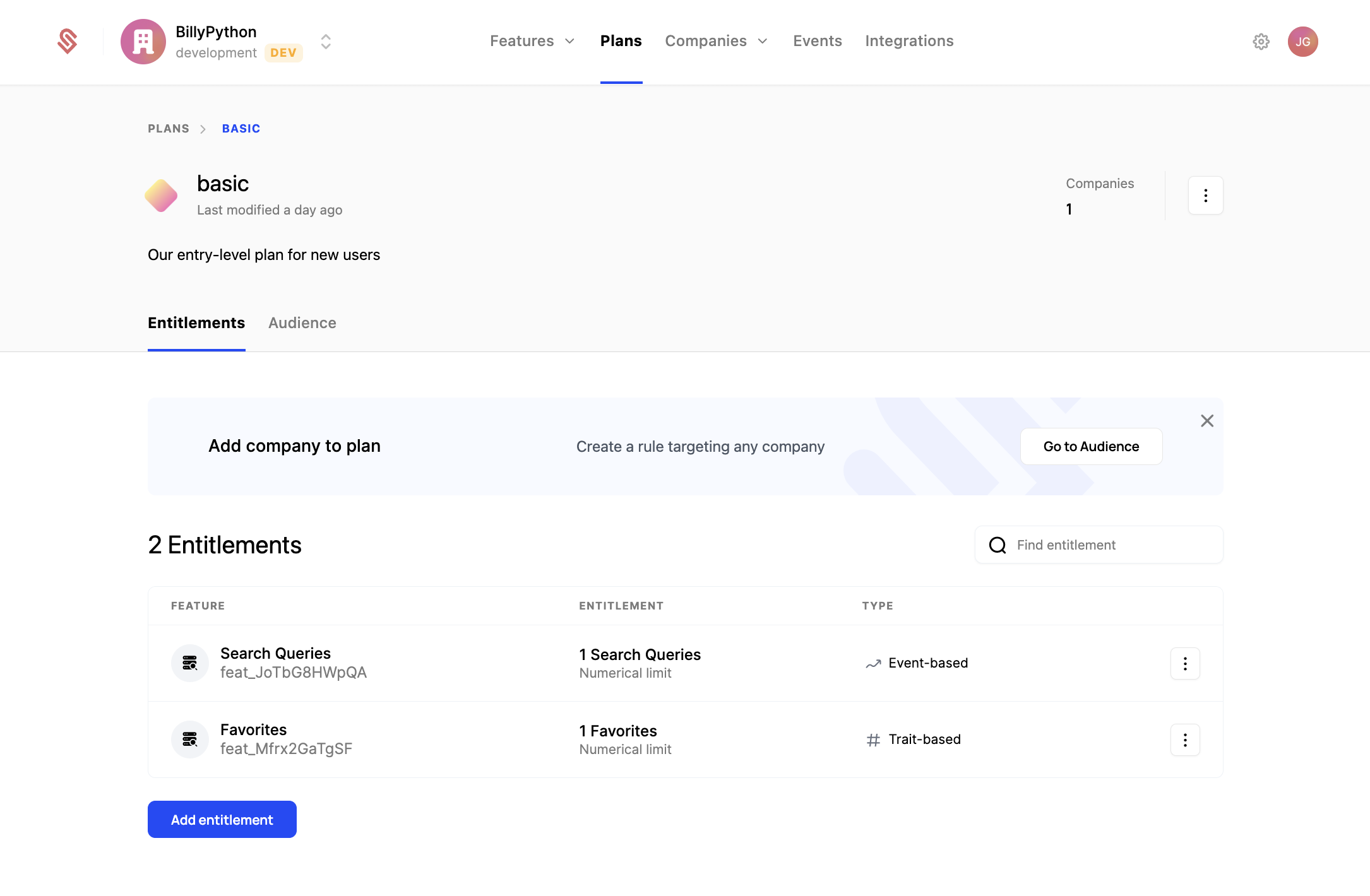 To see how Schematic is integrated into the Billy app to manage features and plans, go here.