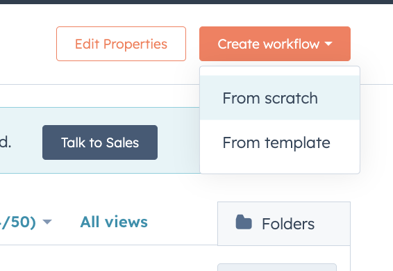 Navigate to Automations and select Workflows. In the Create Workflow dropwdown select From scratch.