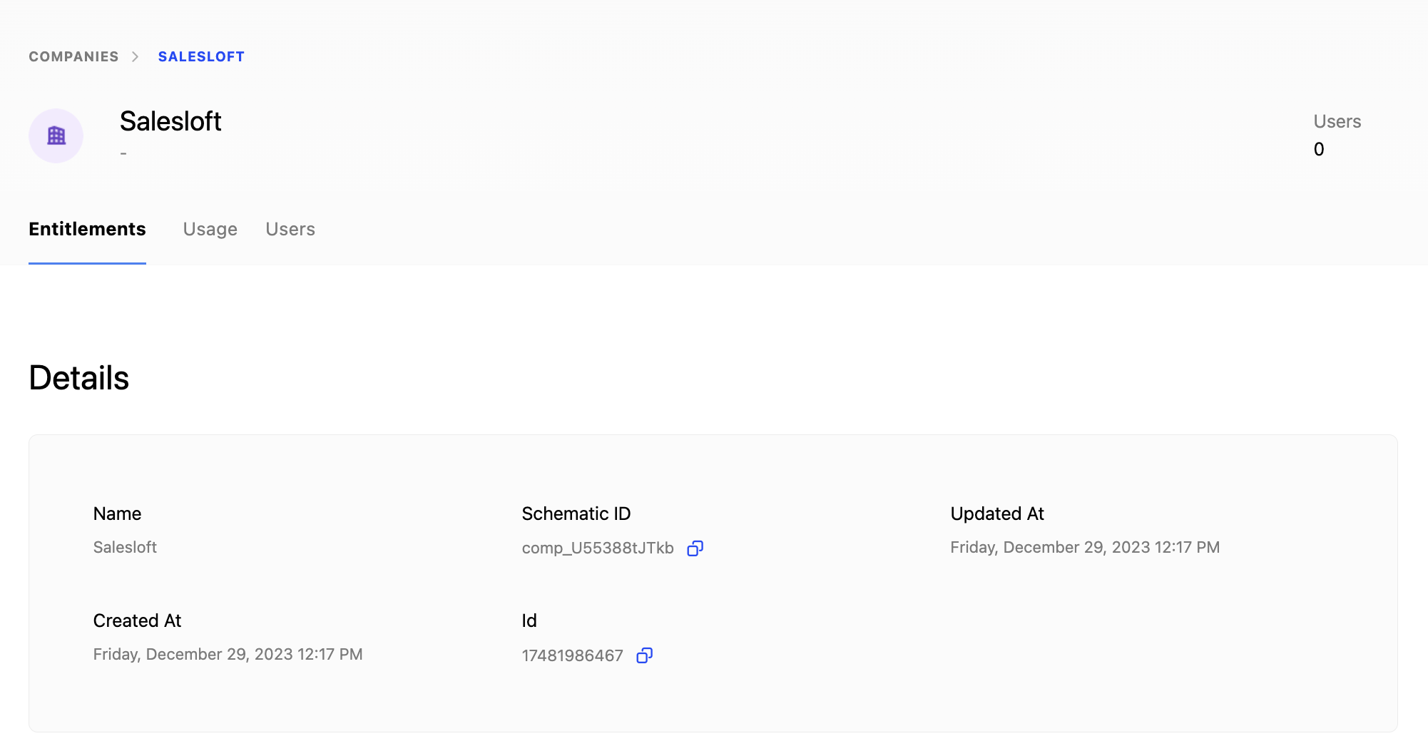 Copy the code below into the Code section to communicate with the Schematic /companies endpoint.