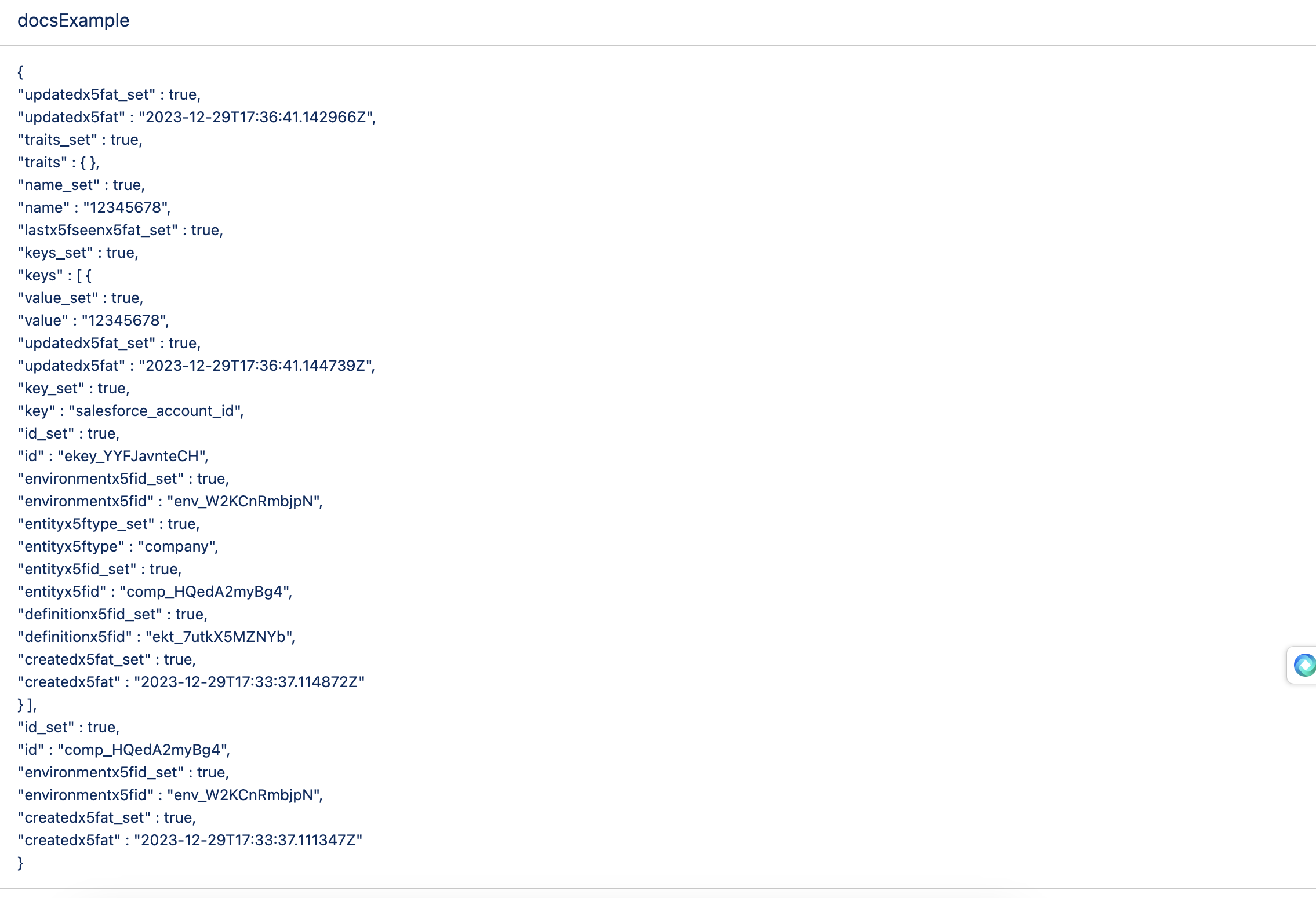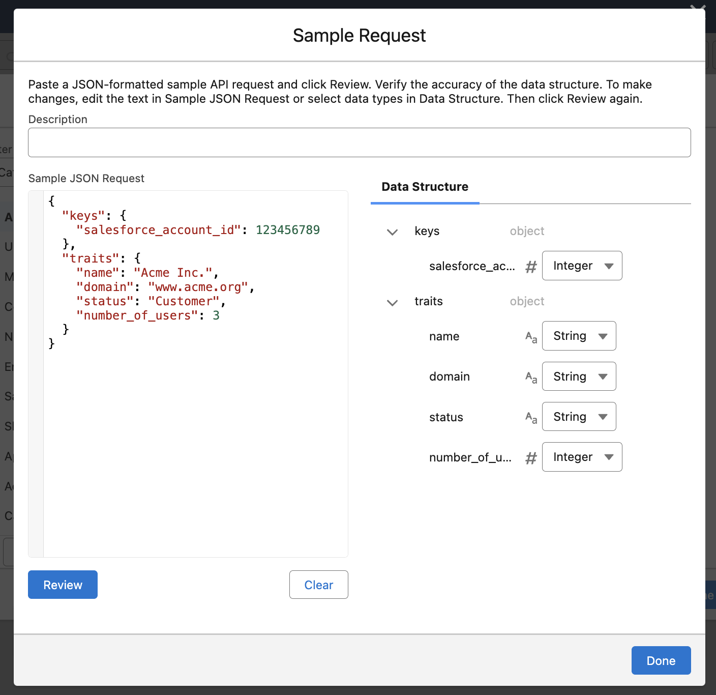 We can define more than one key, as long as it uniquely corresponds to a given company in Schematic. In this case, we’re using the Salesforce Account ID that we will find on the Account object.